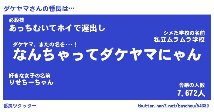 | ヒーロー風カッコイイあだ名 | 『スーパーダケヤマ』『天弓騎士ダケ』 |