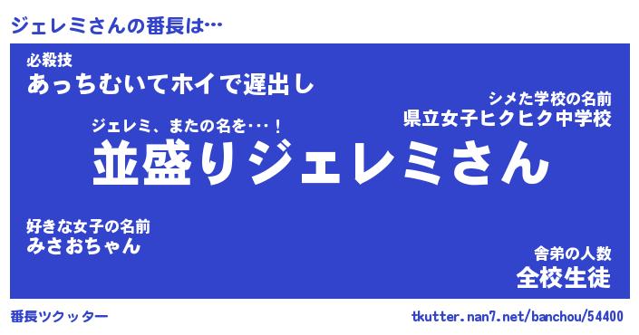 | ファンタジー風あだ名 | 『ジェフェル』『エターナルジェレミー』 |
