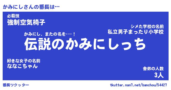 | 男性向けラノベタイトル風あだ名 | 『かみにしの憂鬱』 |