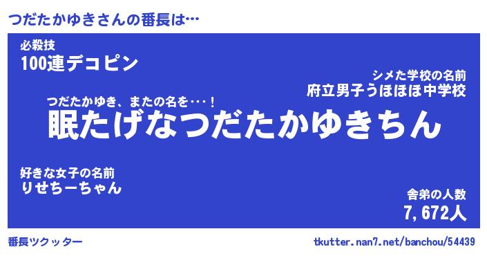 | ヒーロー風カッコイイあだ名 | 『スーパーツダタカユキ』『銀牙騎士ツダ』 |
