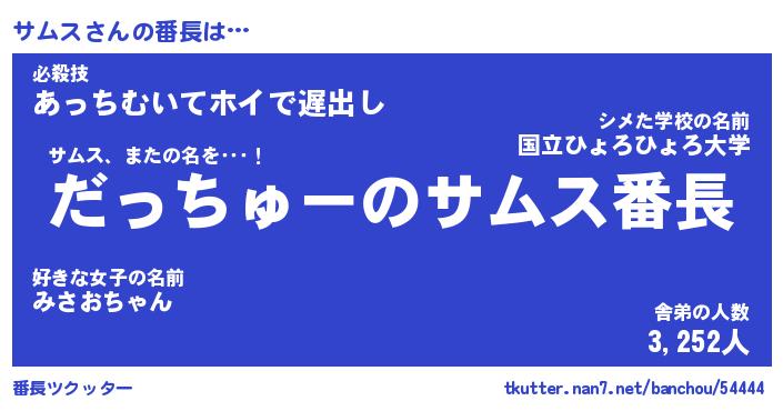 | ポケモン風あだ名 | 『サムチュウ』『サムスダネ』 |
