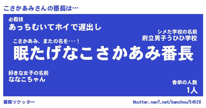 | 肩書あだ名 | 『こさかあみ御曹司』『こさかあみ校長』 |