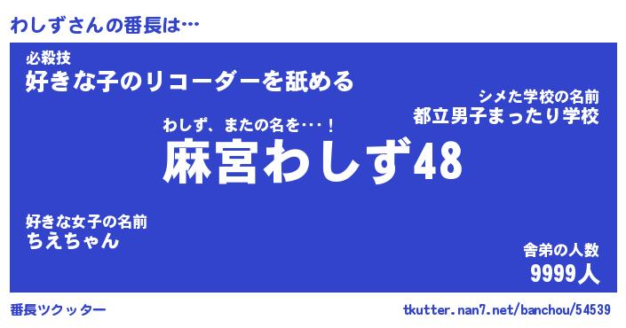 | 意味不明あだ名 | 『ペロリンわしず』『わしずフォーエバー』 |