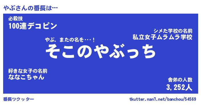 | 2回繰り返すあだ名 | 『やぶやぶ』『ややぶぶ』『あんあん』 |