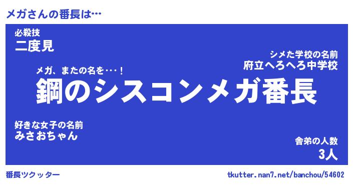 | ヘコむあだ名 | 『メガもー』『レバニラ』『メガお』 |