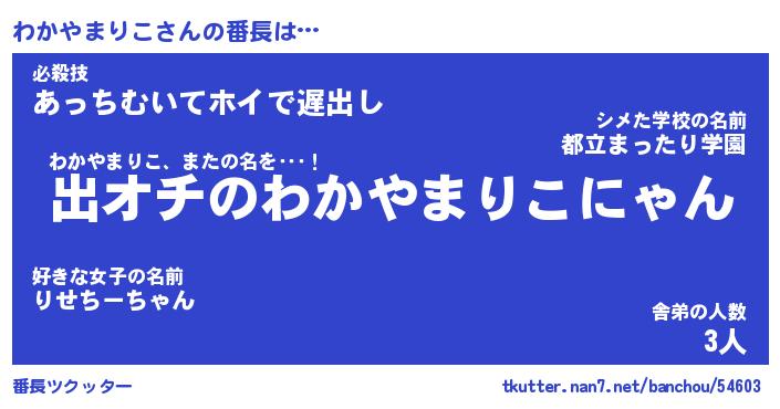 | ヒーロー風カッコイイあだ名 | 『スーパーワカヤマリコ』『魔戒騎士ワカ』 |