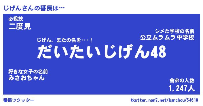 | ヒーロー風カッコイイあだ名 | 『スーパージゲン』『ウルトラじげんマン』 |
