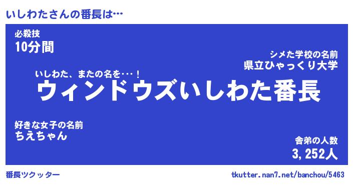 | ファンタジー風あだ名 | 『イシフェル』『エターナルイシワター』 |