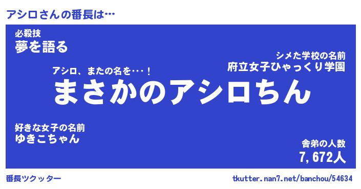 | 意味不明あだ名 | 『ペロリンアシロ』『アシロフォーエバー』 |