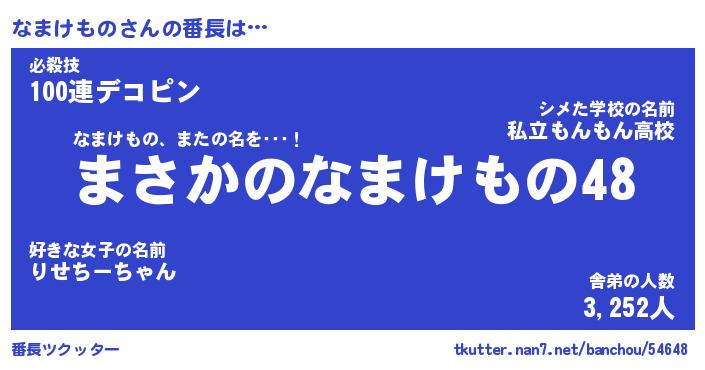 | ピコ太郎風あだ名 | 『ナコ三郎』『ピナ一郎』『ナマ十郎』 |