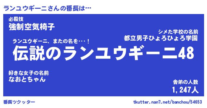 | 伝説のあだ名 | 『伝説のスナイパーランユウギーニ』 |