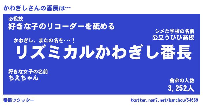 | 意味不明あだ名 | 『ペロリンかわぎし』『永久保存かわぎし』 |
