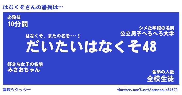 | ファンタジー風あだ名 | 『ハナフェル』『エターナルハナクソー』 |