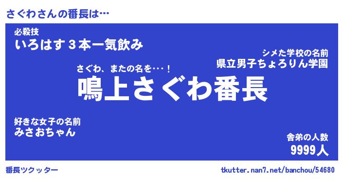 | ヒーロー風カッコイイあだ名 | 『スーパーサグワ』『ウルトラさぐわマン』 |