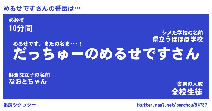 | 肩書あだ名 | 『めるせです店長』『めるせです総理大臣』 |