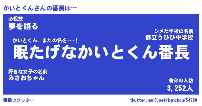 | 肩書あだ名 | 『かいとくん社長』『かいとくん総理大臣』 |