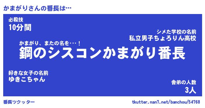 | ヒーロー風カッコイイあだ名 | 『スーパーカマガリ』『魔戒騎士カマ』 |