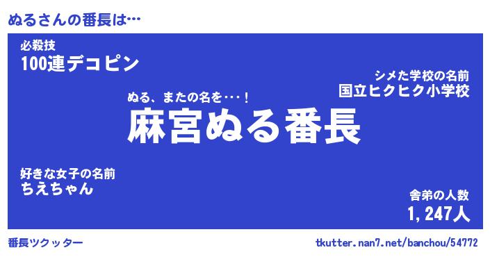 | ファンタジー風あだ名 | 『ヌルフェル』『エターナルヌルー』 |