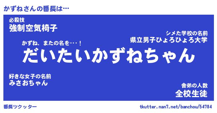 | 意味不明あだ名 | 『ペロリンかずね』『かずねフォーエバー』 |