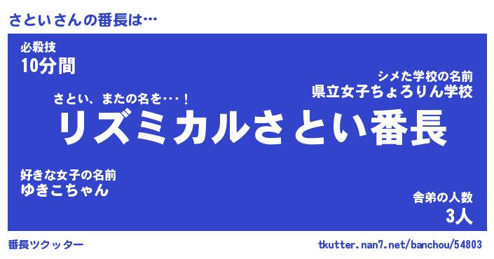 | 男性向けラノベタイトル風あだ名 | 『さといの憂鬱』 |