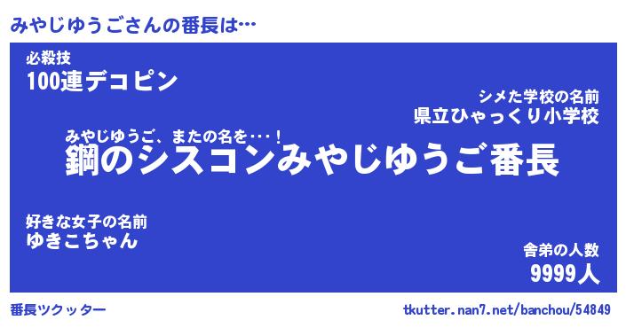 | 伝説のあだ名 | 『封印されしスナイパーみやじゆうご』 |
