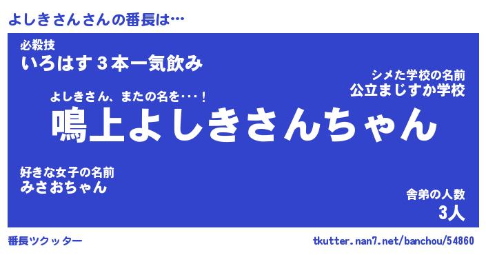 | ポケモン風あだ名 | 『ヨシチュウ』『ヨシキダネ』 |