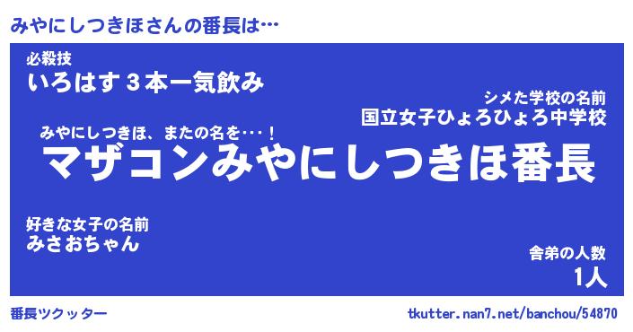 | 伝説のあだ名 | 『封印されしスナイパーみやにしつきほ』 |