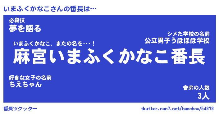 | ポケモン風あだ名 | 『イマチュウ』『イマフダネ』 |