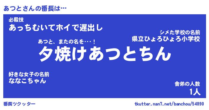 | 意味不明あだ名 | 『ペロリンあつと』『あつとフォーエバー』 |