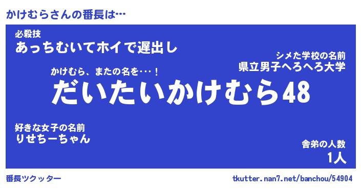 | 意味不明あだ名 | 『ペロリンかけむら』『永久保存かけむら』 |