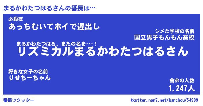| 意味不明あだ名 | 『ペロリンまるかわたつはる』 |