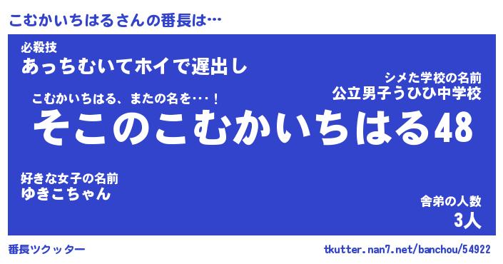 | 肩書あだ名 | 『こむかいちはる御曹司』 |