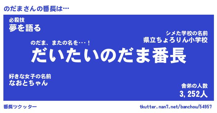 | ヒーロー風カッコイイあだ名 | 『スーパーノダマ』『ウルトラのだまマン』 |