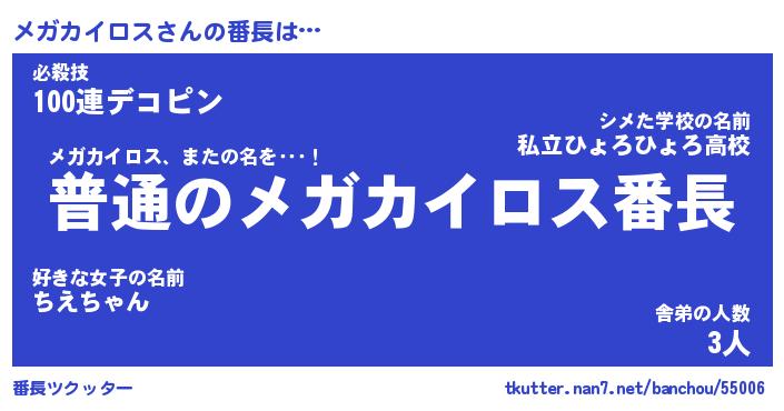 | 2回繰り返すあだ名 | 『メガメガ』『メメガガ』『おらおら』 |