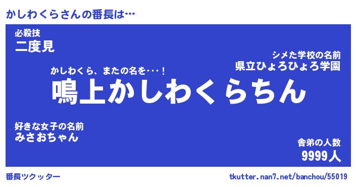| 伝説のあだ名 | 『封印されしスナイパーかしわくら』 |