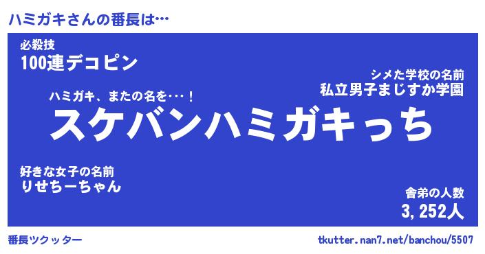 | ヒーロー風カッコイイあだ名 | 『スーパーハミガキ』『黄金騎士ハミ』 |