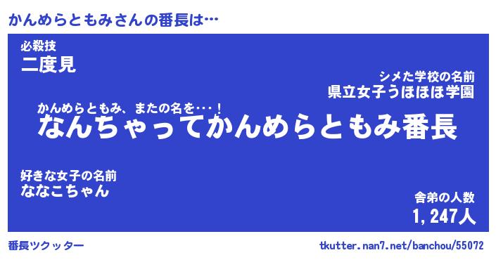 | 伝説のあだ名 | 『伝説のスナイパーかんめらともみ』 |