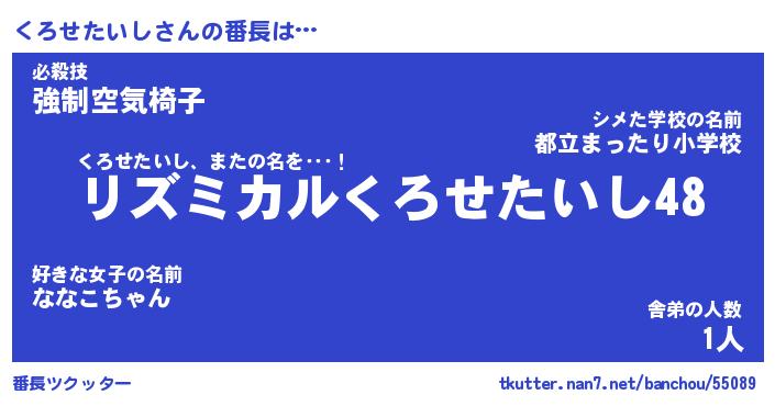 | 伝説のあだ名 | 『伝説のスナイパーくろせたいし』 |