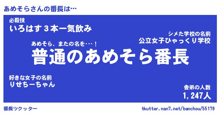 | 肩書あだ名 | 『あめそら社長』『あめそら大統領』 |