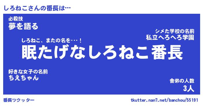 | 肩書あだ名 | 『しろねこ店長』『しろねこ大統領』 |