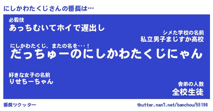 | ポケモン風あだ名 | 『ニシチュウ』『ニシカダネ』 |