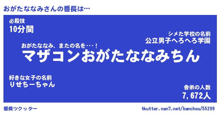 | 男性向けラノベタイトル風あだ名 | 『オガタナナミアートオンライン』 |