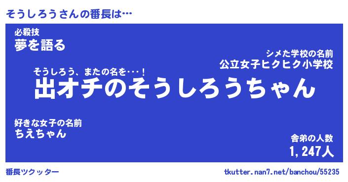 | 伝説のあだ名 | 『伝説のスナイパーそうしろう』 |