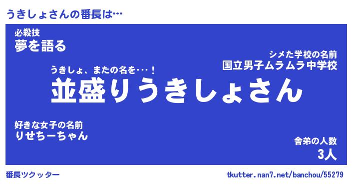 | 意味不明あだ名 | 『ペロリンうきしょ』『永久保存うきしょ』 |