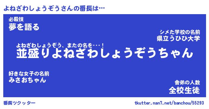 | 伝説のあだ名 | 『不死鳥のスナイパーよねざわしょうぞう』 |