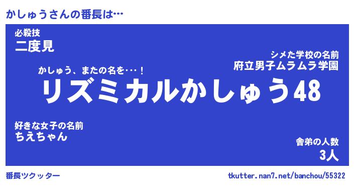 | 男性向けラノベタイトル風あだ名 | 『かしゅうの憂鬱』 |