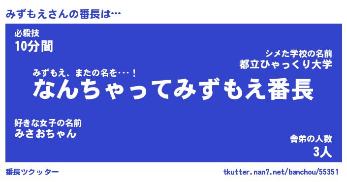 | 肩書あだ名 | 『みずもえ社長』『みずもえ総理大臣』 |
