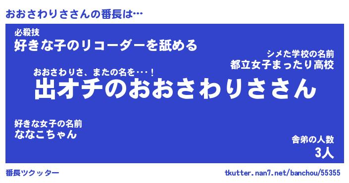 | 伝説のあだ名 | 『伝説のスナイパーおおさわりさ』 |