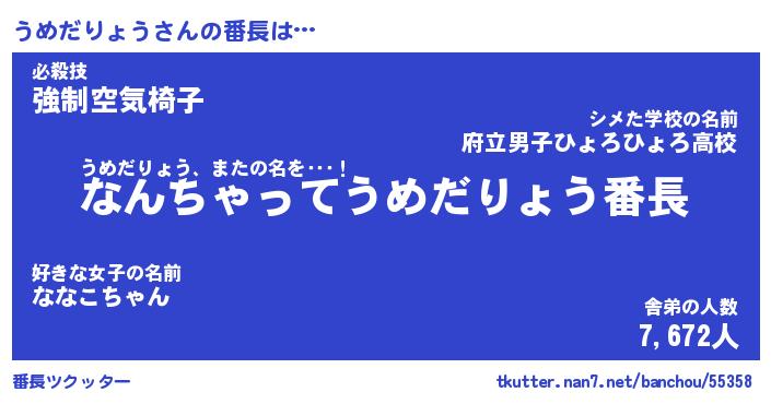 | ポケモン風あだ名 | 『ウメチュウ』『ウメダダネ』 |
