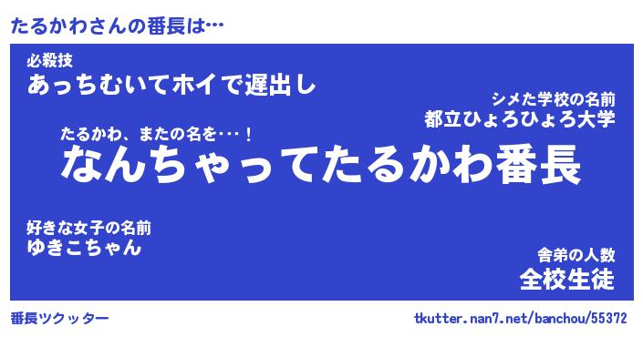| 肩書あだ名 | 『たるかわCEO』『たるかわ大統領』 |
